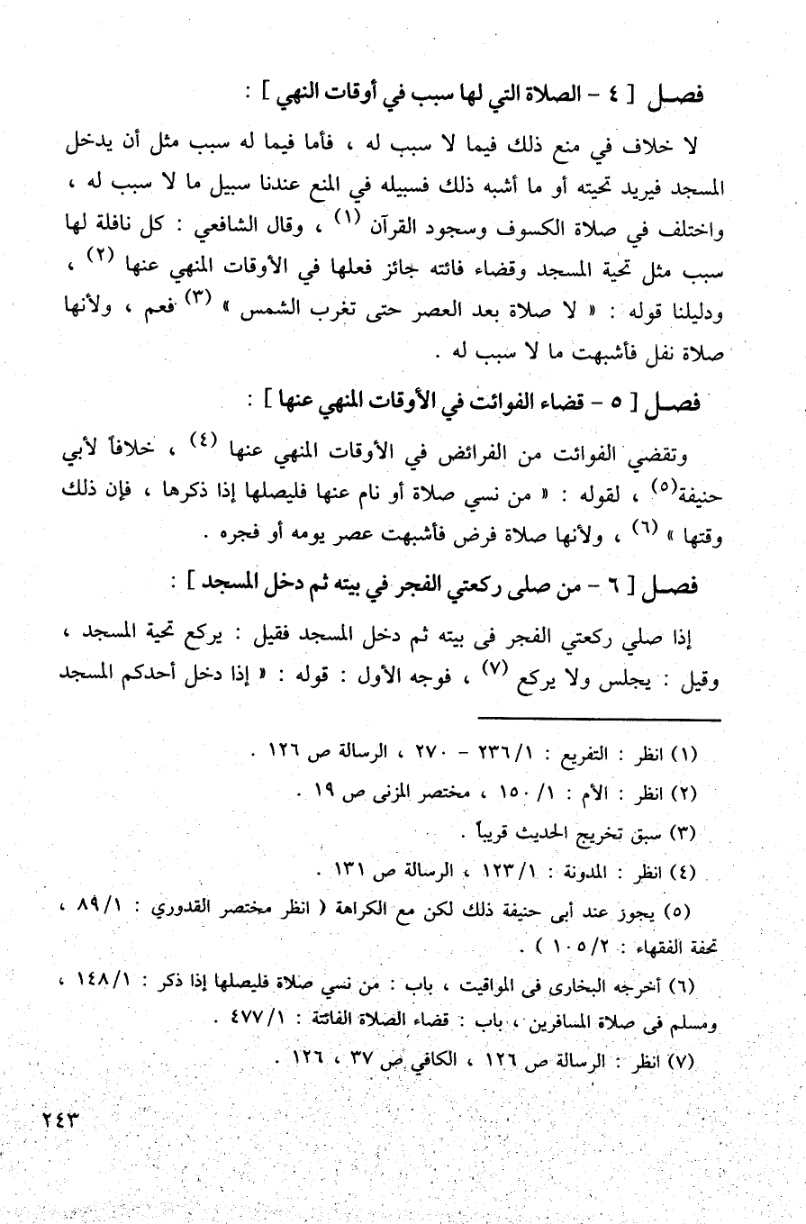 (¬4) انظر: المدونة: 1/ 123، الرسالة ص 131.