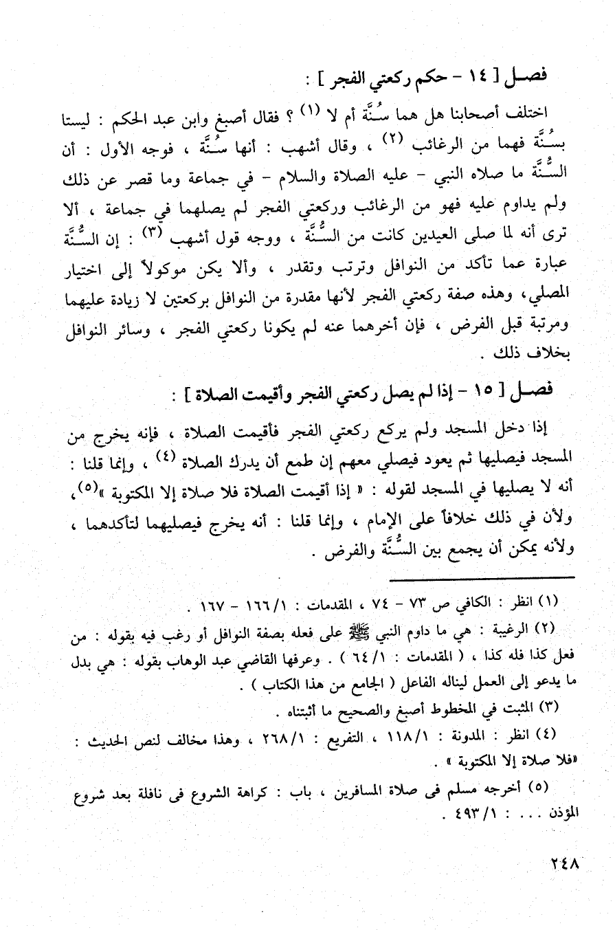 (¬4) انظر: المدونة: 1/ 118، التفريع: 1/ 268، وهذا مخالف لنص الحديث: "فلا صلاة إلا المكتوبة".