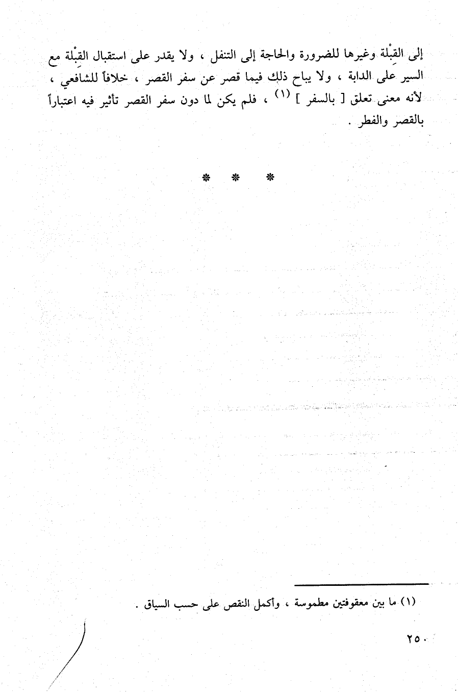 إلى القِبْلة وغيرها للضرورة والحاجة إلى التنفل، ولا يقدر على استقبال القِبْلة مع السير على الدابة، ولا يباح ذلك فيما قصر عن سفر القصر، خلافًا للشافعي، لأنه معنى تعلق [بالسفر] (¬1)، فلم يكن لما دون سفر القصر تأثير فيه اعتبارًا بالقصر والفطر.