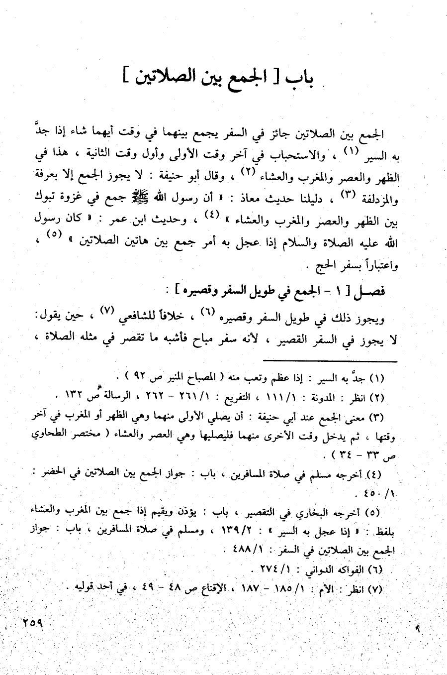 فصل [1 - الجمع في طويل السفر وقصيره]: