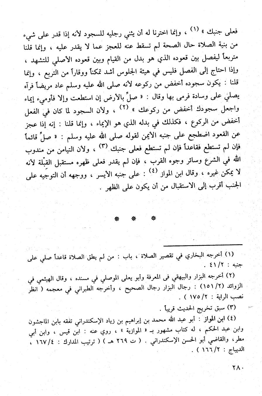 (¬1) أخرجه البخاري في تقصير الصلاة، باب: من لم يطق الصلاة قاعدًا صلى على جنبه: 2/ 41.