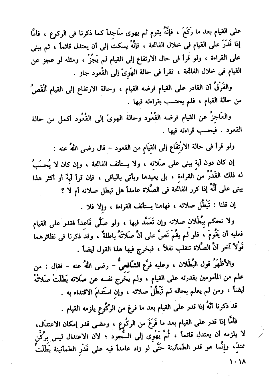 فأما إذا قدر على القيام بعد ما فرغ من الركوع، ومضى قدر إمكان الاعتدال، لا يلزمه أن يعتدل قائمًا، ثم يهوي إلى السجود، لأن الاعتدال ليس بركن ممتد، وإنما هو قدر الطمأنينة حتى لو زاد عامدًا فيه على قدر الطمأننية بطلت