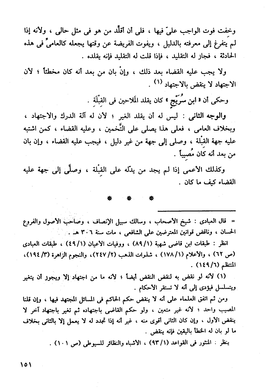 وحكي أن ابن سريج كان يقلد الملاحين في القبلة.