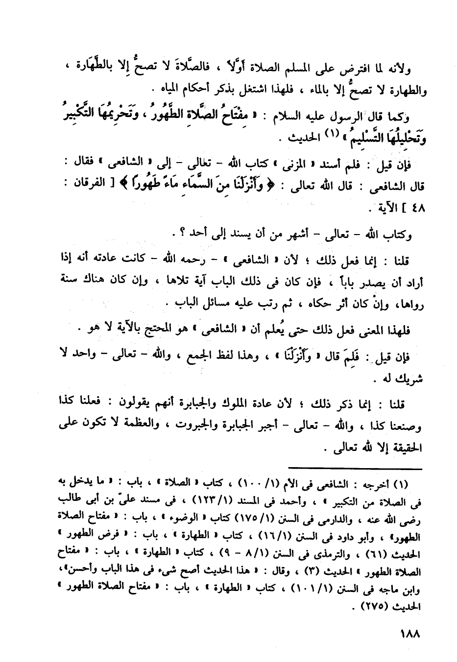 فإن قيل: فلم أسند المزني كتاب الله تعالى إلى الشافعي فقال: قال الشافعي: قال الله تعالى: وأنزلنا من السماء ماء طهورًا. الاية.