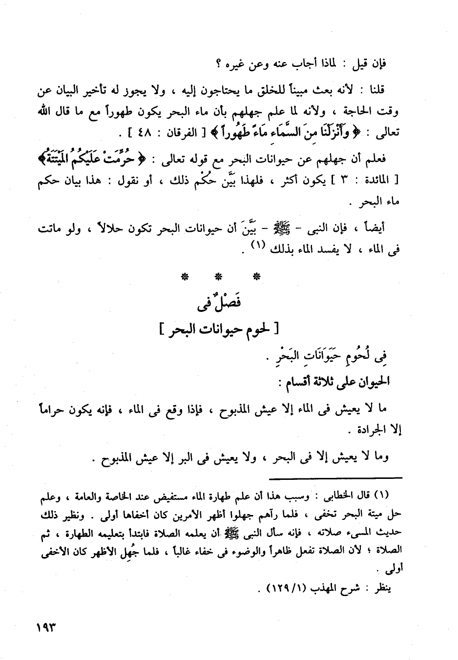 فصل في [لحوم حيوانات البحر]