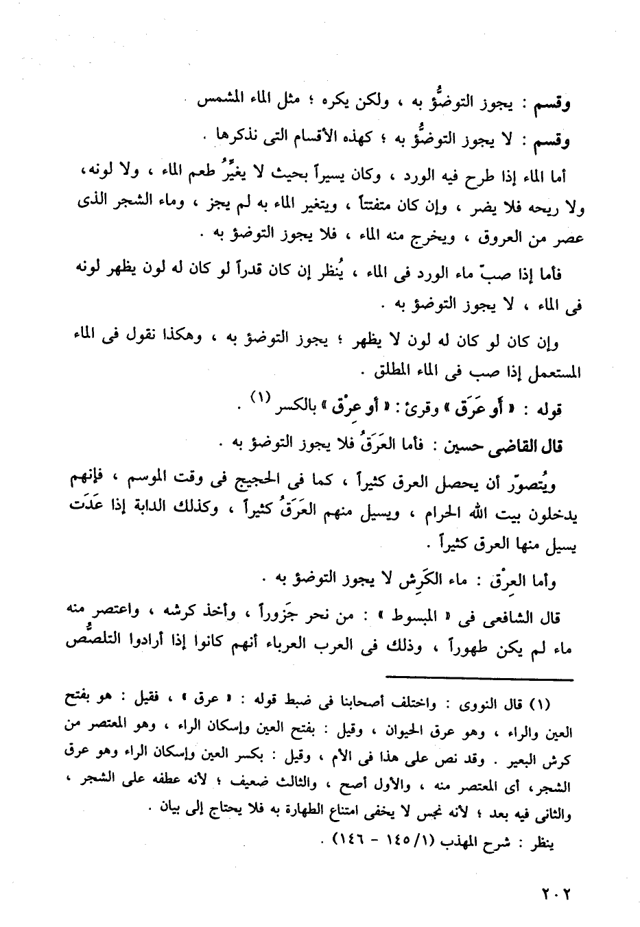 أما الماء إذا طرح فيه الورد، وكان يسيرًا بحيث لا يغير طعم الماء، ولا لونه، ولا ريحه فلا يضر، وإن كان متفتتا، ويتغير الماء به لم يجز، وما الشجر الذي عصر من العروق، ويخرج منه الماء، فلا يجوز التوضؤ به.