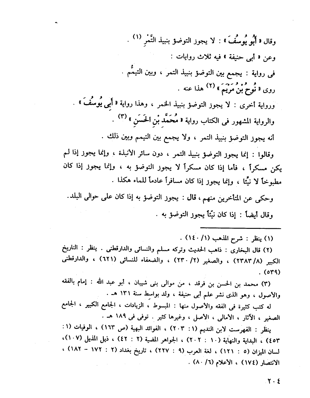 وقالوا: إنما يجوز التوضؤ بنبيذ التمر، دون سائر الأنبذة، وإنما يجوز إذا لم يكن مسكرا، فأما إذا كان مسكرا لا يجوز التوضؤ به، وإنما يجوز إذا كان مطبوخا لا نيئا، وإنما يجوز إذا كان مسافرا عادمًا للماء هكذا.