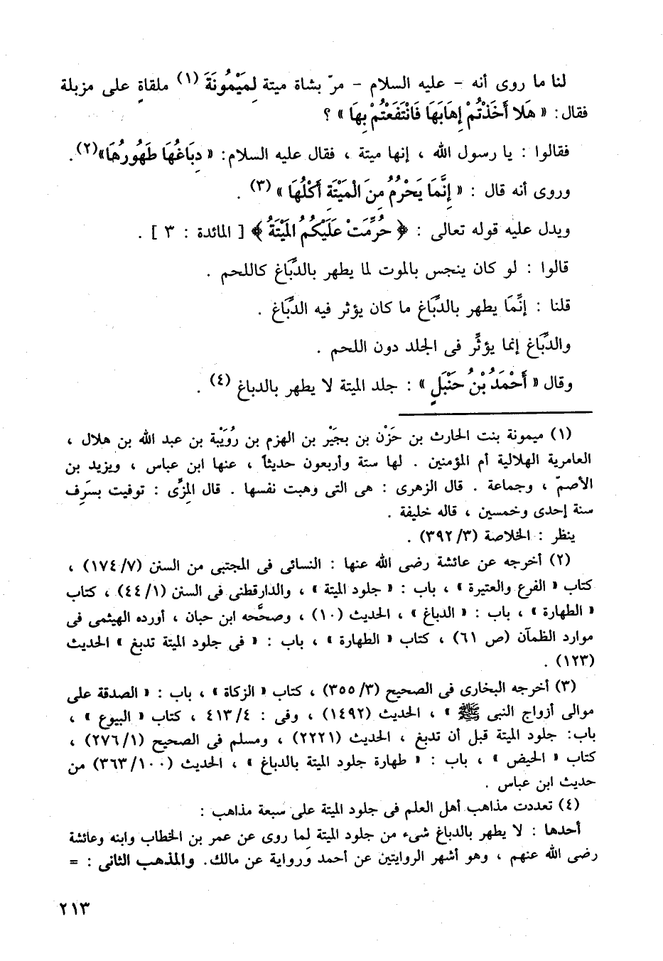 فقالوا يا رسول الله، إنها ميتة، فقال عليه السلام: دباغها طهورها، وروي أنه قال: إنما يحرم من الميتة أكلها.