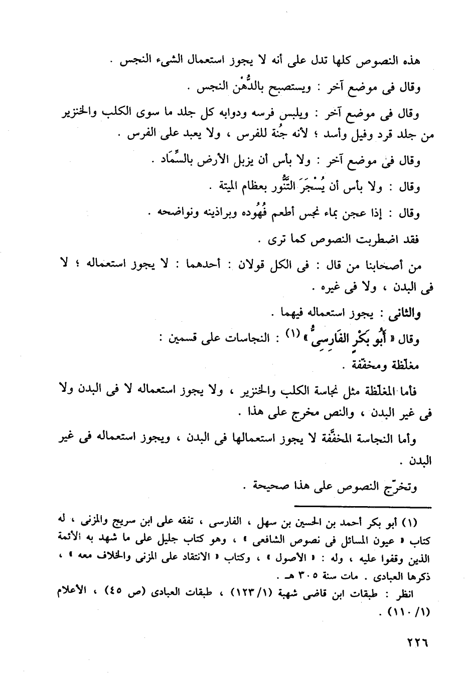 وقال أبو بكر الفارسي، النجاسات على قسمين: