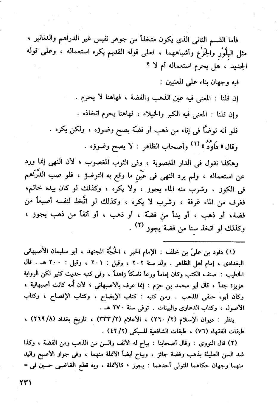 فأما القسم الثاني الذي يكون متخذا من جوهر نفيس غير الدراهم والدنانير، مثل البلور والجزع وأشباههما، فعلى قوله القديم يكره استعماله، وعلى قوله الجديد، هل يحرم استعماله أم لا؟