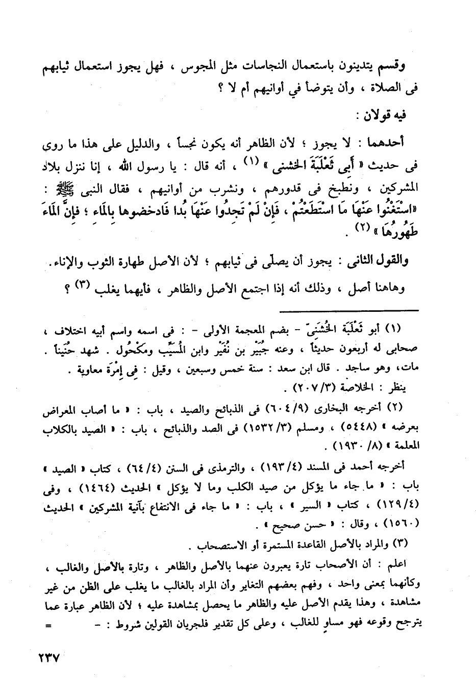 والقول الثاني: يجوز أن يصلي في ثيابهم، لأن الأصل طهارة الثوب، والإناء، وها هنا أصل، وذلك أنه إذا اجتمع الأصل والظاهر، فأيهما يغلب؟