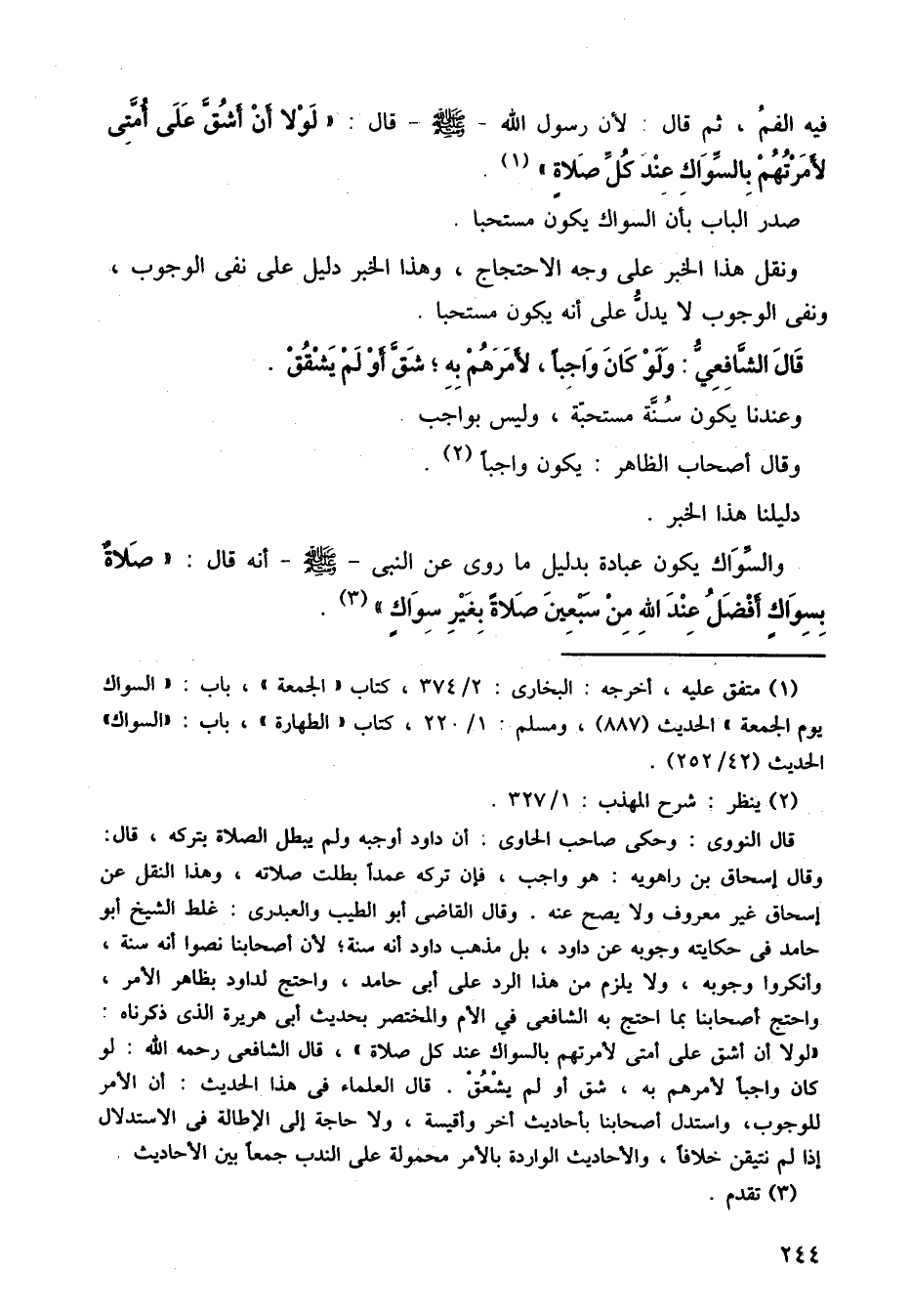 فيه الفم، ثم قال: لأن رسول الله صلى الله عليه وسلم قال: لولا أن أشق على أمتى لأمرتهم بالسواك عند كل صلاة.