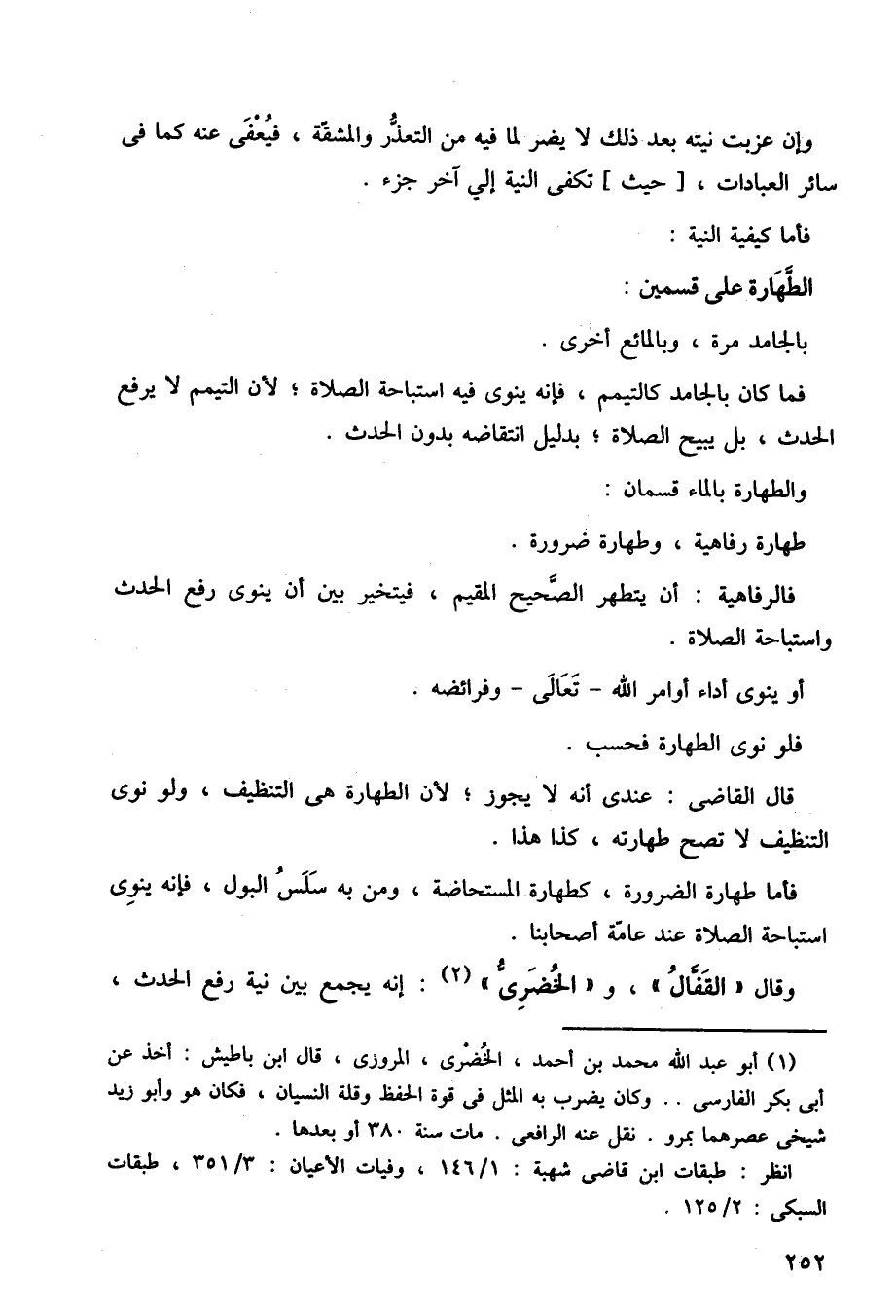 طهارة رفاهية، وطهارة ضرورة.