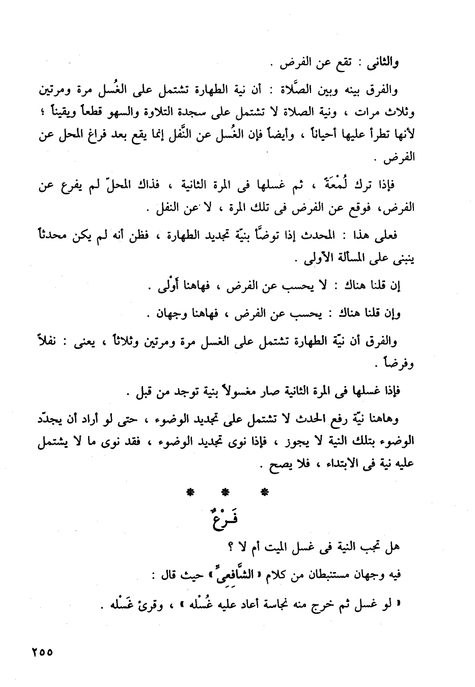 والفرق بينه وبين الصلاة: أن نية الطهارة تشتمل على الغسل مرة ومرتين، وثلاث مرات، ونية الصلاة لا تشتمل على سجدة التلاوة والسهو قطعًا ويقينًا، لأنها تطرأ عليها أحيانا، وأيضًا فإن الغسل عن النفل إنما يقع بعد فراغ المحل عن الفرض.
