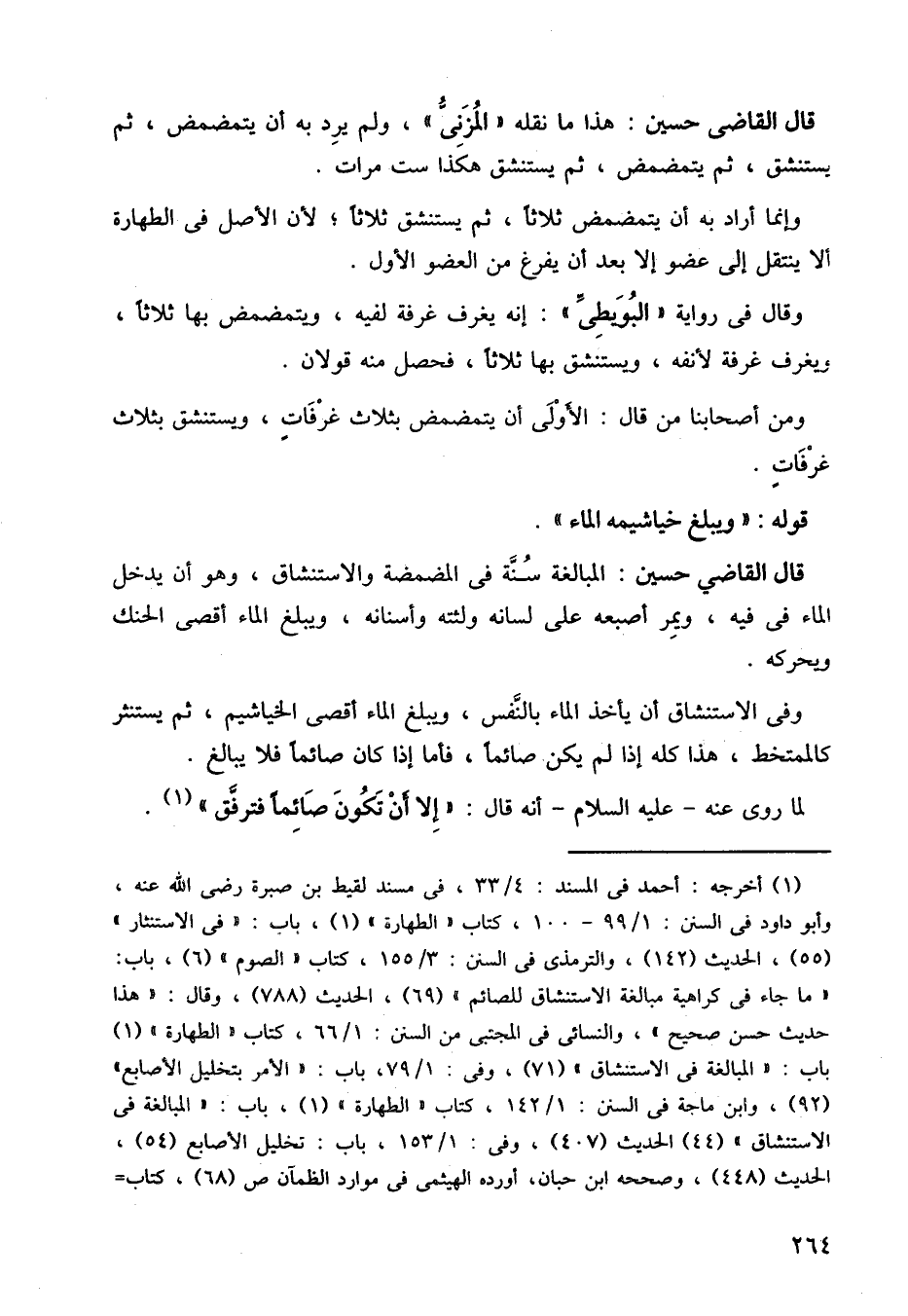 قال القاضي حسين: هذا ما نقله (المزني)، لم يرد به أن يتمضمض، ثم يستنشق، ثم يتمضمض، ثم يشتنشق هكذا ست مرات.
