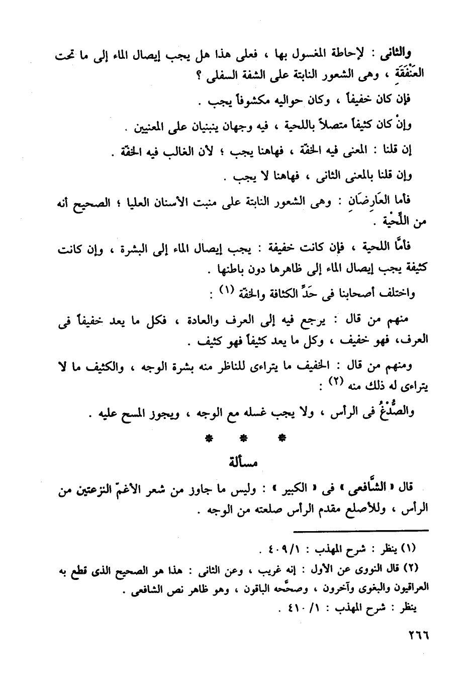فأما اللحية، فإن كانت خفيفة: يجب إيصال الماء إلى البشرة، وإن كانت كثيفة يجب إيصال الماء إلى ظاهرها دون باطنها.