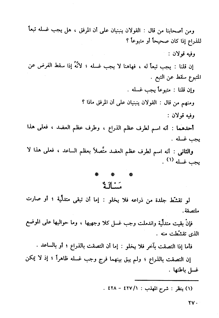 ومن أصحابنا من قال: القولان ينبنيان على أن المرفق، هل يجب غسله تبعًا للذراع إذا كان صحيحًا أو متبوعًا؟