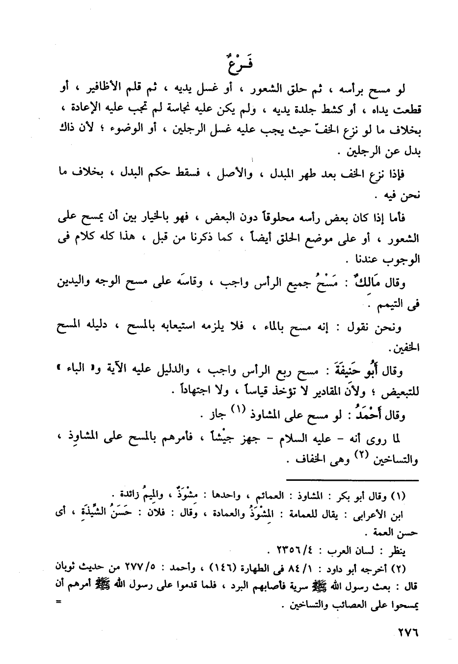 فأما إذا كان بعض رأسه محلوقًا دون البعض، فهو بالخيار بين أن يمسح على الشعور، أو على موضع الحلق أيضًا، كما ذكرنا من قبل، هذا كله كلام في الوجوب عندنا.
