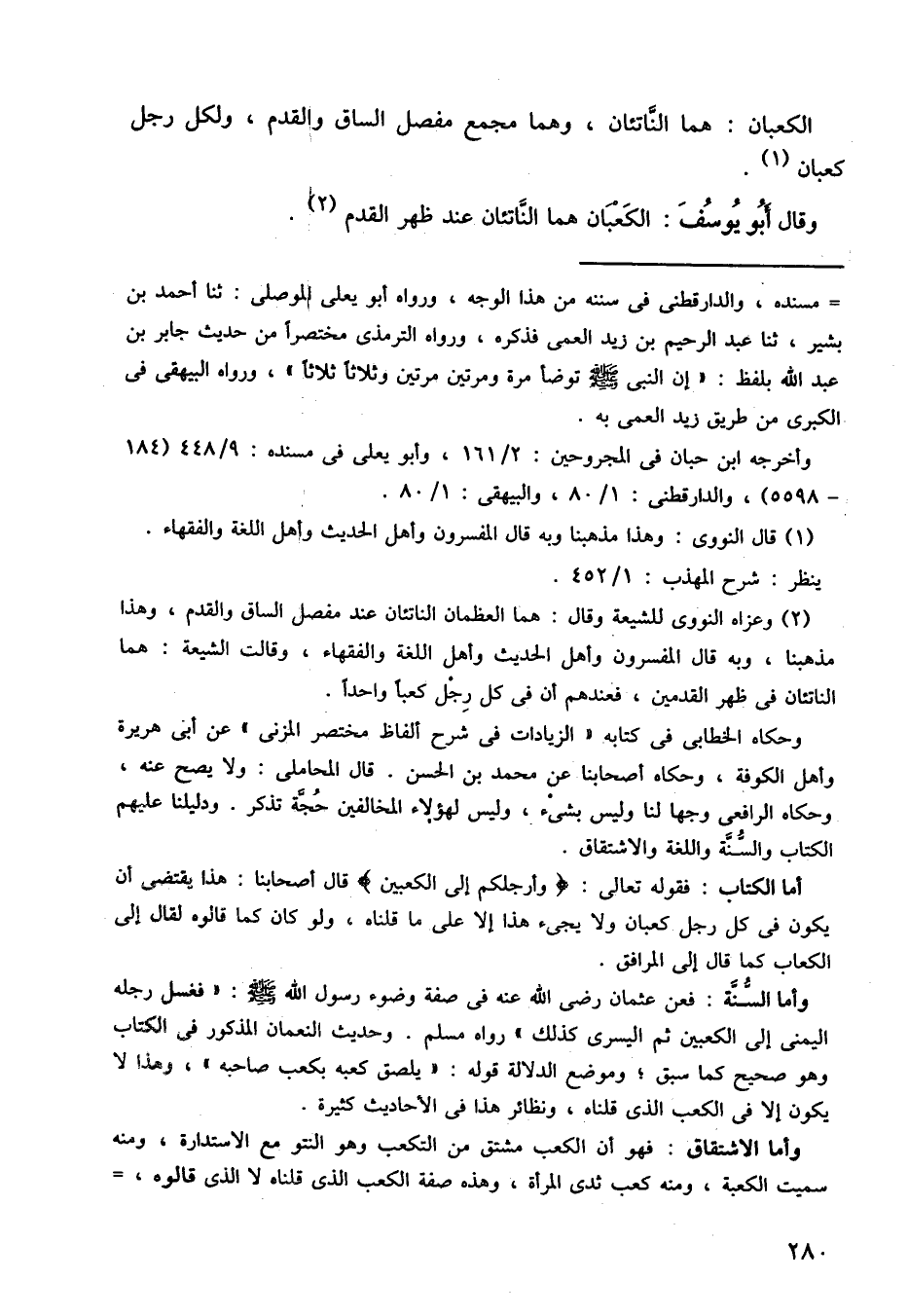 وقال أبو يوسف: الكعبان هما الناتئان عند ظهر القدم.