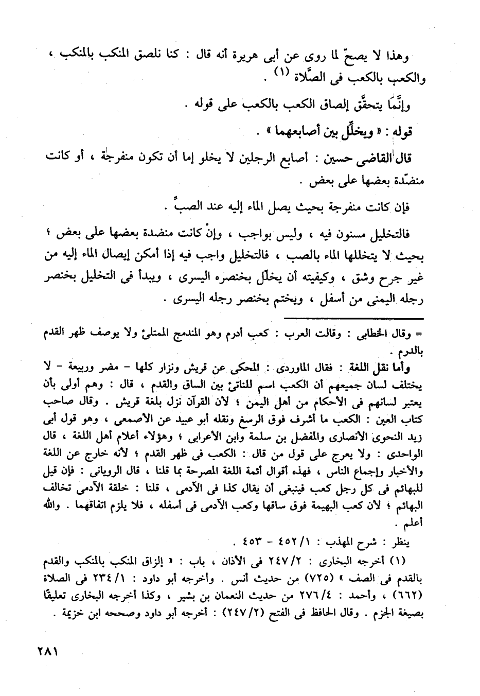 قال القاضي حسين: أصابع الرجلين لا يخلو إما أن تكون منفرجة، أو كانت منضدة بعضها على بعض.