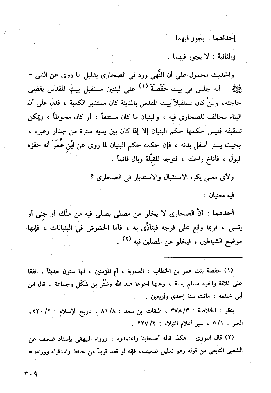 والحديث محمول على أن النهي ورد في الصحاري بدليل ما روي عن النبي صلى الله عليه وسلم أنه جلس في بيت حفصة على لبنتين مستقبل بيت المقدس يقضي حاجته، ومن كان مستقبلا بيت المقدس بالمدينة كان مستدبر الكعبة، فدل على أن البناء مخالف للصحاري فيه، والبنيان ما كان مستقفا، أو كان محوطا، ويمكن تسقيفه فليس حكمها حكم البنيان إلا إذا كان بين يديه سترة من جدار وغيره، بحيث يستر أسفل بدنه، فإن حكمه حكم البنيان لما روى عن ابن عمر أنه حفزه البول، فأناخ راحلته، فتوجه للقبلة وبال قائمًا.