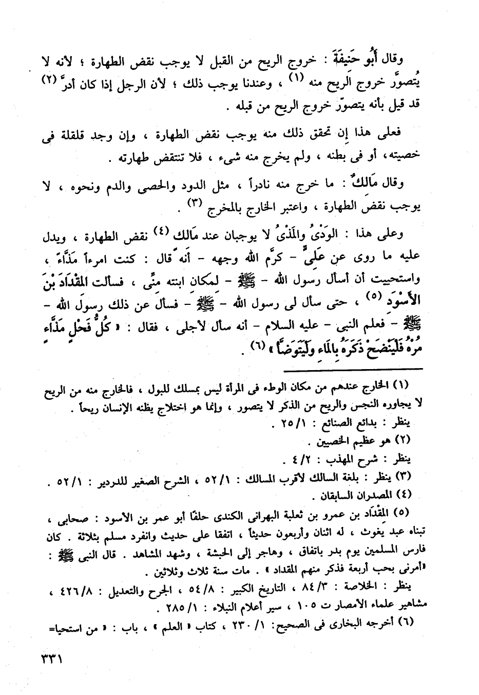 وعلى هذا: الودي والمذي، لا يوجبان عند مالك، نقض الطهارة، ويدل عليه ما روى عن علي كرم الله وجه، أنه قال: كنت امرءا مذاء، واستحييت أن أسأل رسول الله صلى الله عليه وسلم لمكان ابنته مني، فسألت المقداد بن الأسود حتى سأل لي رسول الله صلى الله عليه وسلم فسأل عن ذلك رسول الله صلى الله عليه وسلم فعلم النبي عليه السلام، أنه سأل لأجلي، فقال: كل فحل مذاء مرة فلينضح ذكره بالماء وليتوضأ.