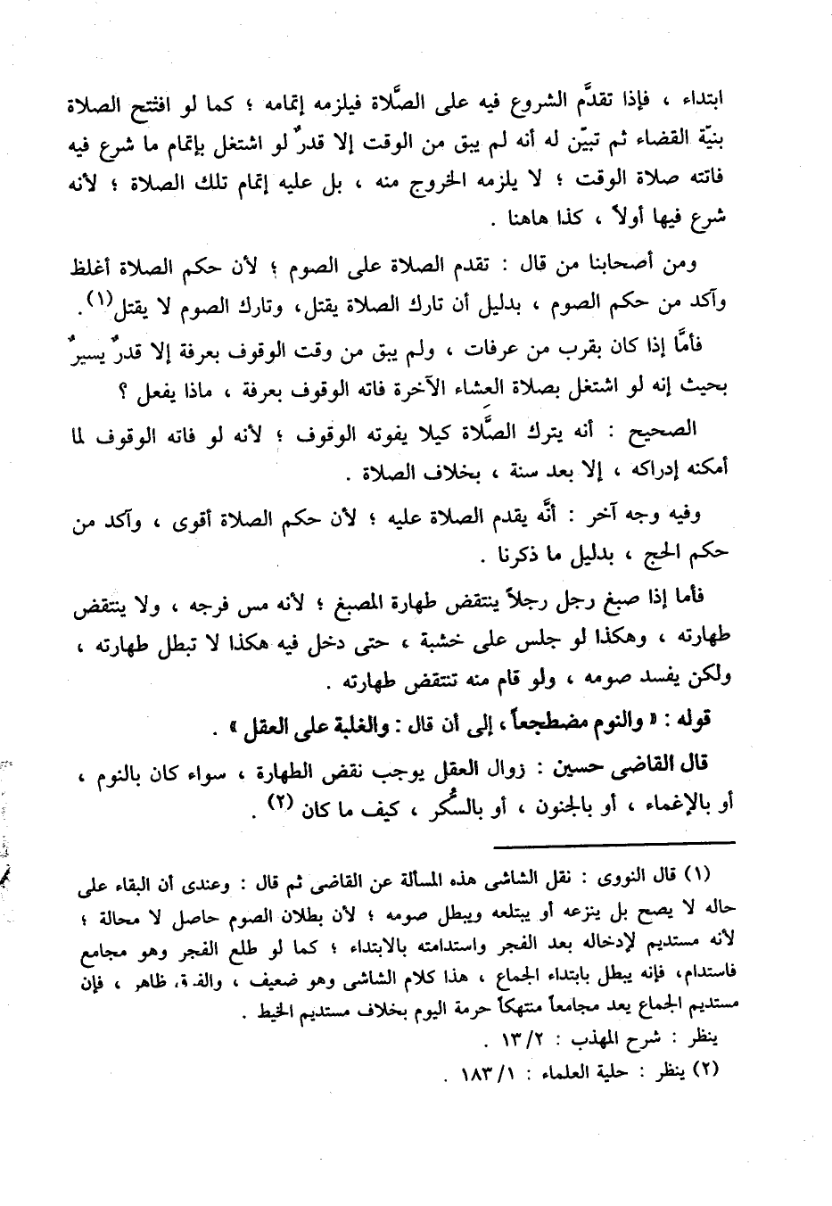 ومن أصحابنا من قال: تقدم الصلاة على الصوم، لأن حكم الصلاة أغلظ وآكد من حكم الصوم، بدليل أن تارك الصلاة يقتل، وتارك الصوم لا يقتل.