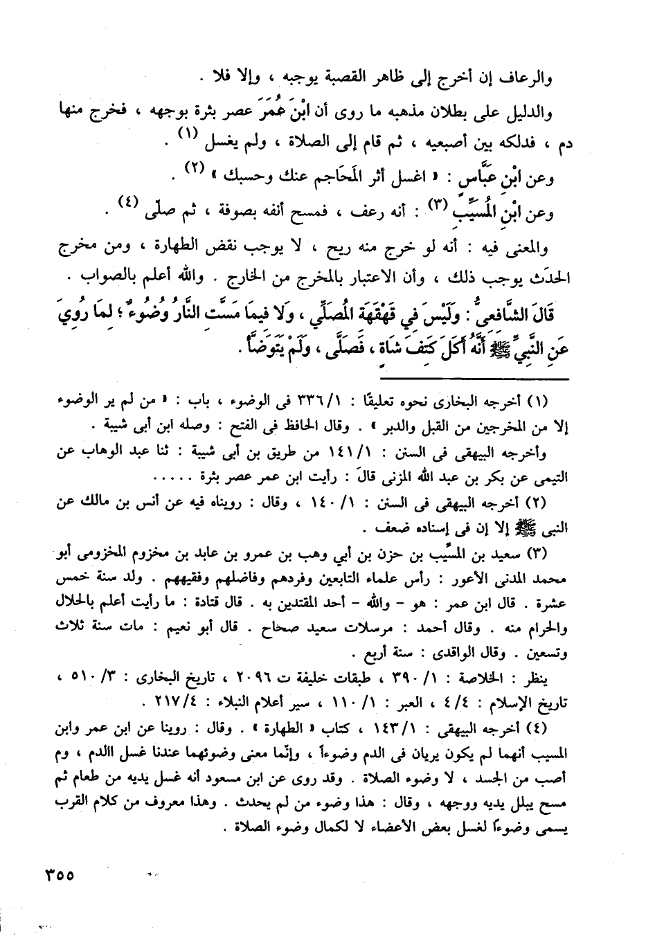 وعن ابن المسيب: أنه رعف، فمسح أنفه بصوفة، ثم صلى.