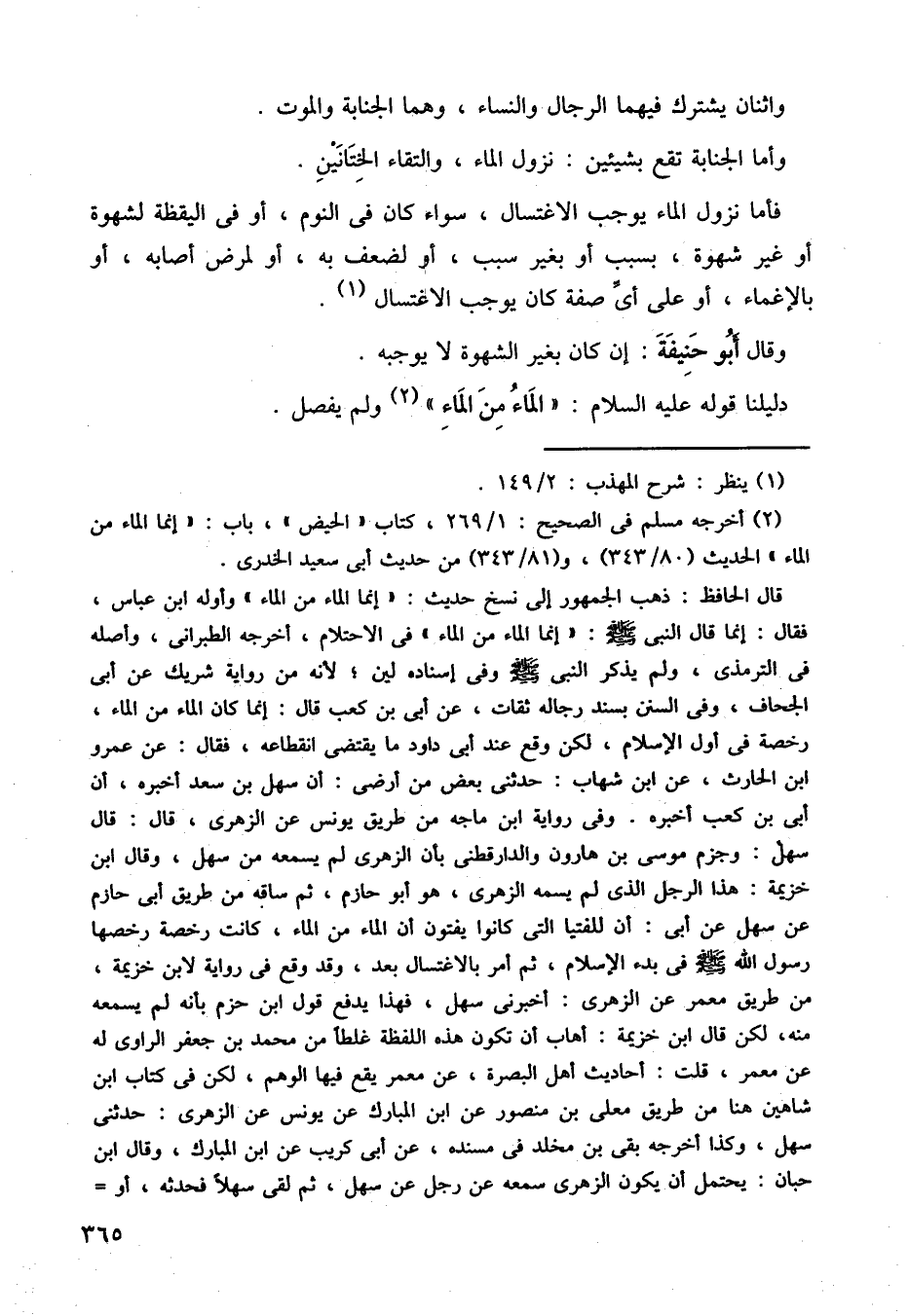 فأما نزول الماء يوجب الاغتسال، سواء كان في النوم، أو في اليقظة لشهوة أو غير شهوة، بسبب أو بغير سبب، أو لضعف به، أو لمرض أصابه، أو بالإغماء، أو على أي صفة كان يوجب الاغتسال.