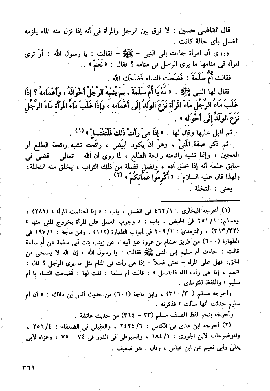 وروى أن امرأة جاءت إلى النبي صلى الله عليه وسلم فقال: يا رسول الله: أو ترى المرأة في منامها ما يرى الرجل في منامه؟ فقال: نعم.