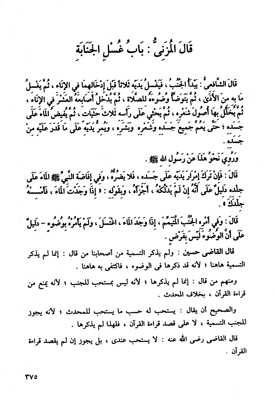 قال المزني: باب غسل الجنابة