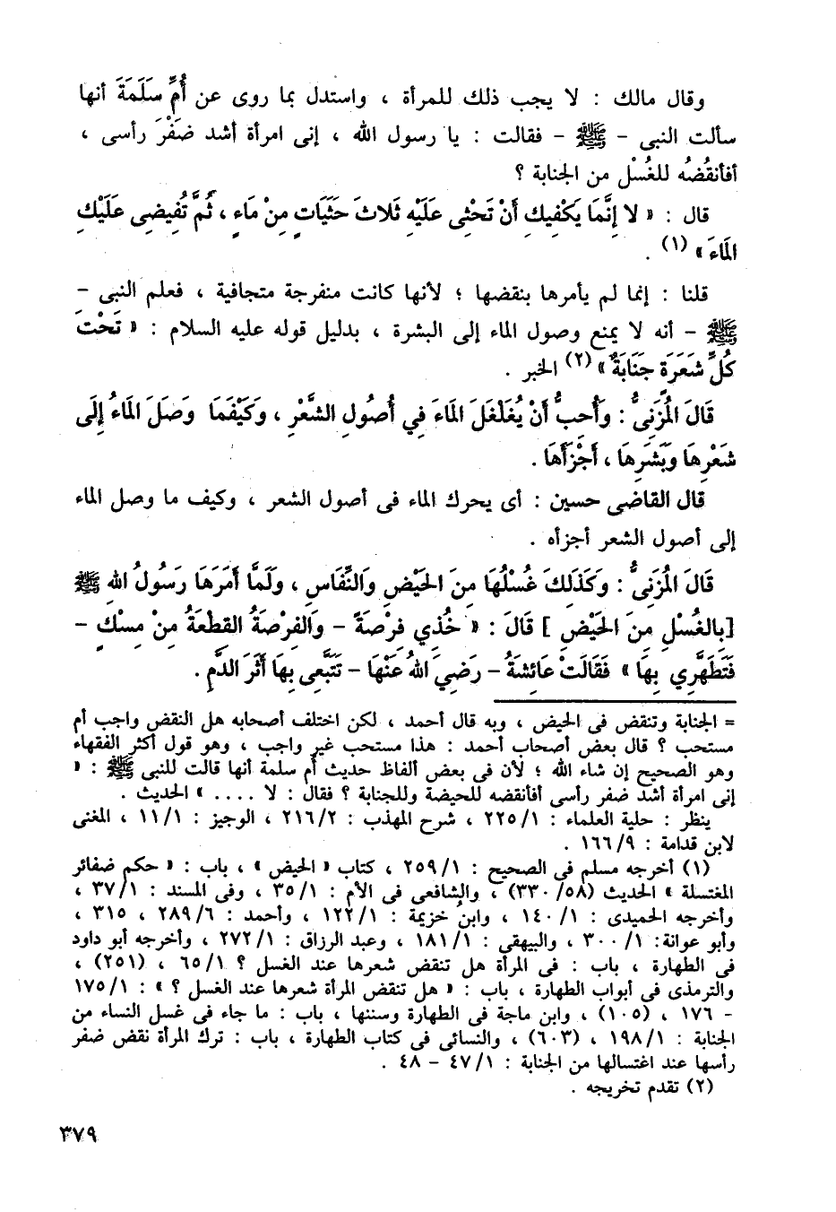 وقال مالك: لا يجب ذلك للمرأة، واستدل بما روى عن أم سلمة أنها سألت النبي صلى الله عليه وسلم فقالت يا رسول الله إني امرأة أشد ضفر رأسي، فأنفقضه للغسل من الجنابة؟