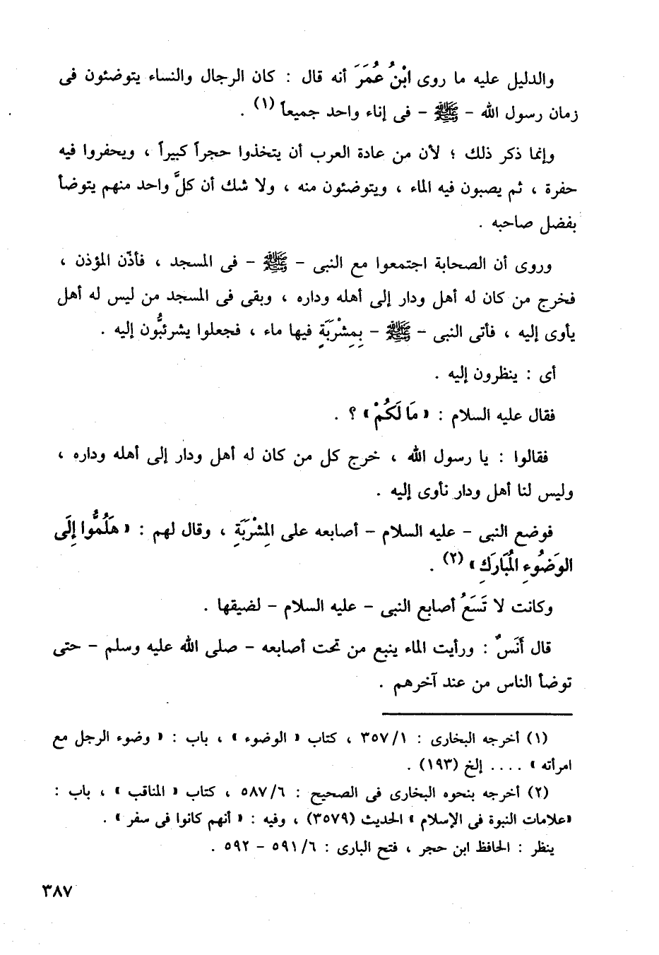 فوضع النبي عليه السلام- أصابعه على المشربة، وقال لهم: هلموا إلى الوضوء المبارك.
