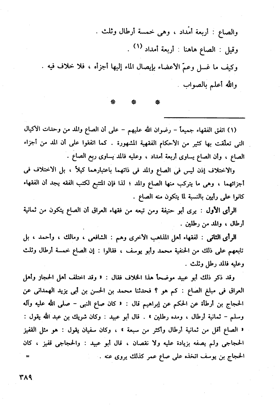 وقيل: الصاع ها هنا: أربعة أمداد.