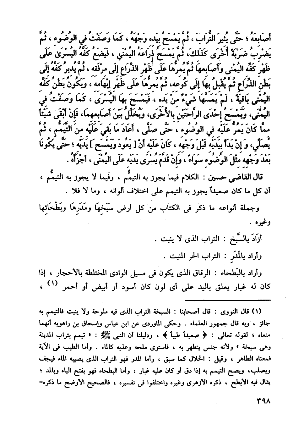 وأراد بالبطحاء: الرقاق الذي يكون في مسيل الوادي المختلطة بالأحجار، إذا كان له غبار يعلق باليد على أي لون كان أسود أو أبيض أو أحمر،