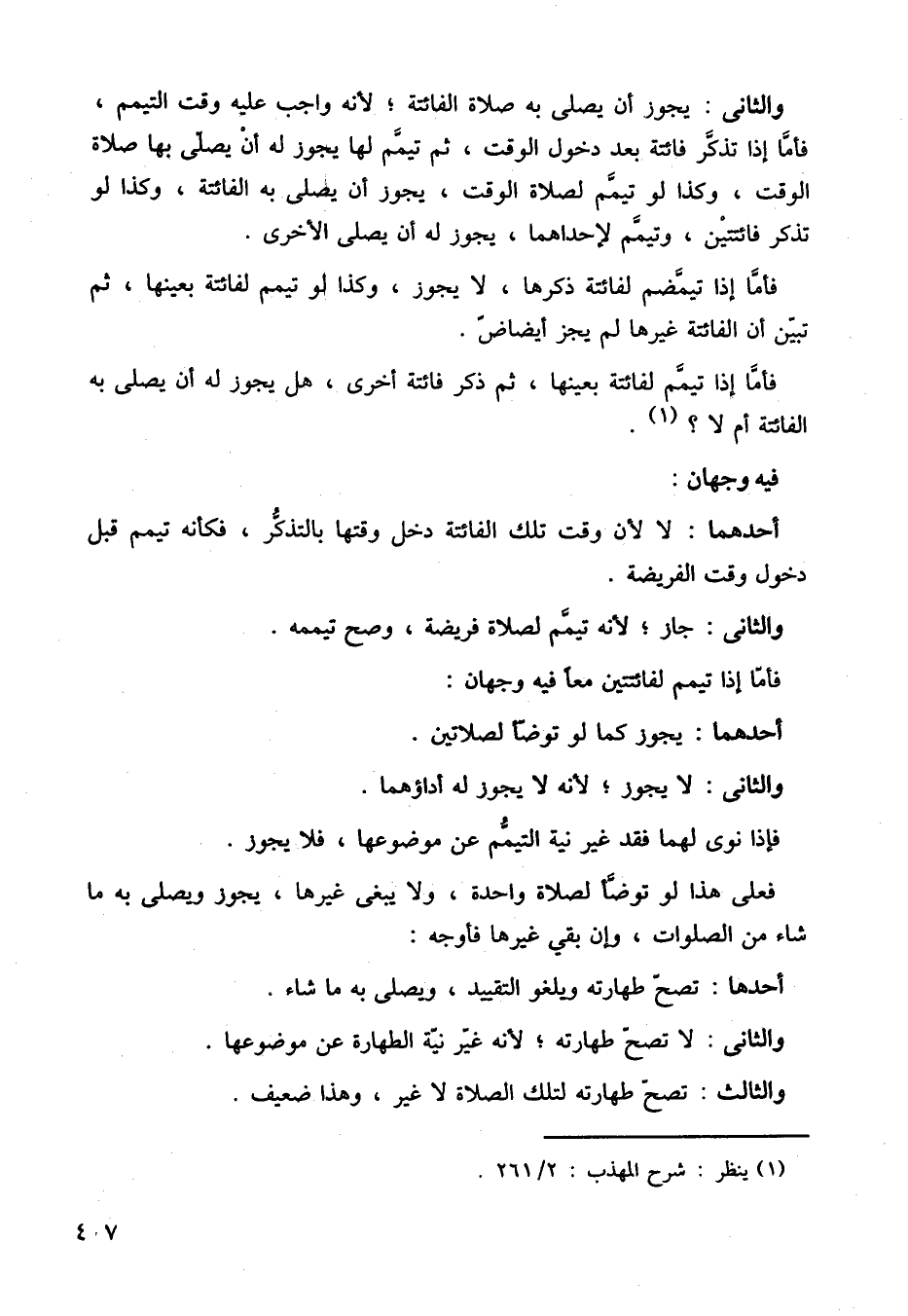 والثاني: يجوز أن يصلى به صلاة الفائتة، لأنه واجب عليه وقت التيمم، فأما إذا تذكر فائتة بعد دخول الوقت، ثم تيمم لها يجوز له أن يصلي بها صلاة الوقت، وكذا لو تيمم لصلاة الوقت، يجوز أن يصلي به الفائتة، وكذا لو تذكر فائتتين، وتيمم لإحداهما، يجوز له أن يصلي الأخرى.