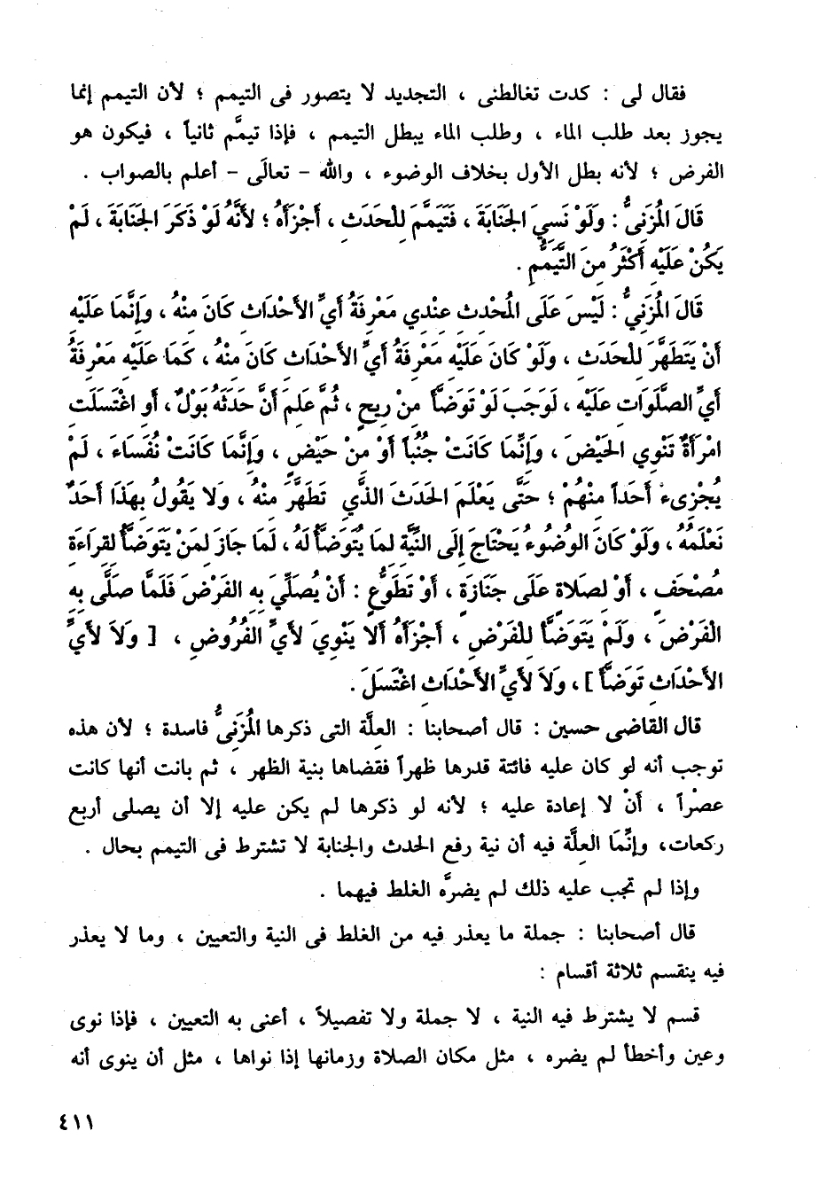 قال القاضي حسين: قال أصحابنا: العلة التي ذكرها المزني فاسدة؛ لأن هذه توجب أنه لو كان عليه فائتة قدرها ظهرًا فقضاها بنية الظهر، ثم بانت أنها كانت عصرًا، أن لا إعادة عليه، لأنه لو ذكرها لم يكن عليه إلا أن يصلي أربع ركعات، وإنما العلة فيه أن نية رفع الحدث والجنابة لا تشترط في التيمم بحال.