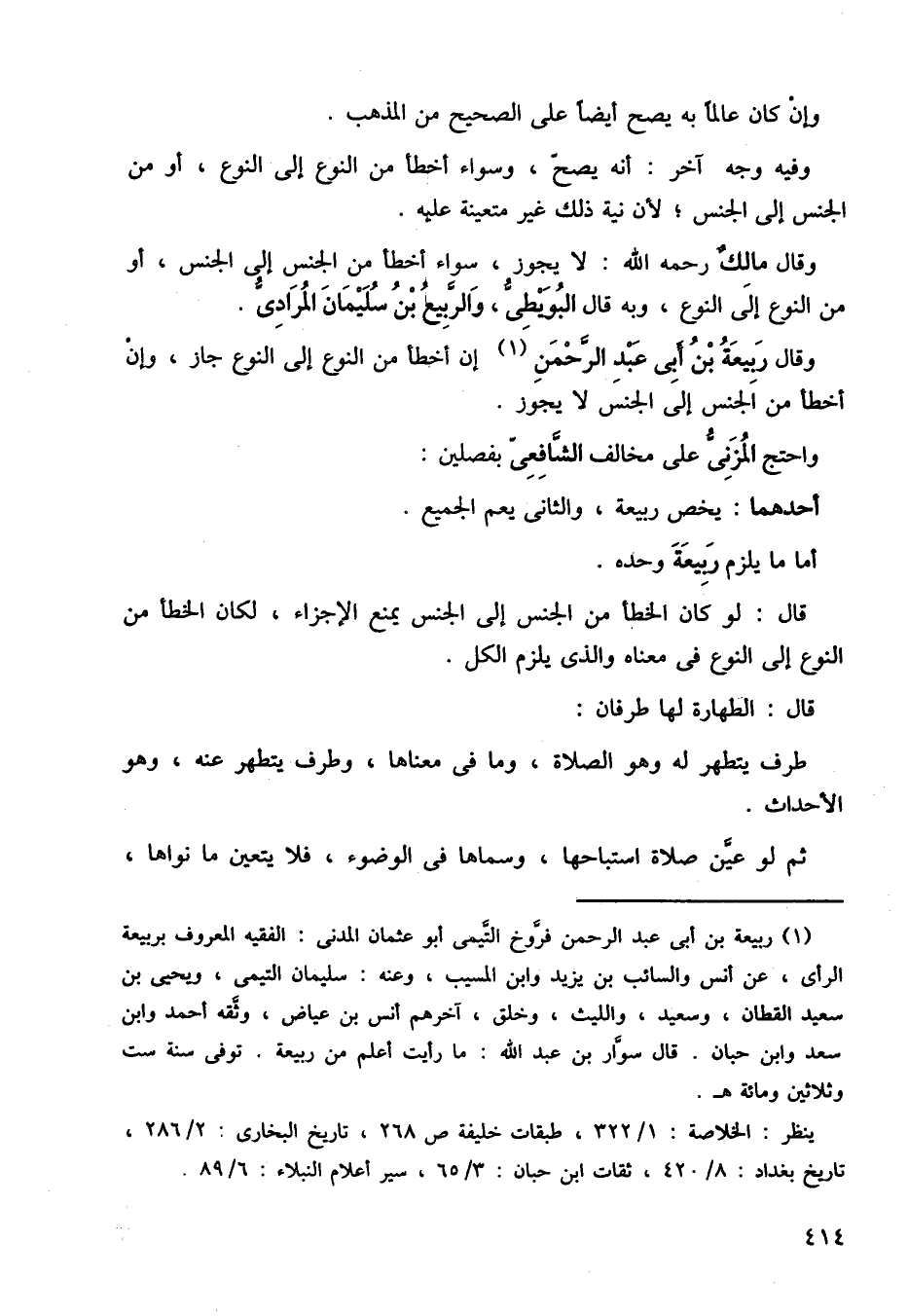 وقال ربيعة بن أبي عبد الرحمن إن أخطأ من النوع إلى النوع جاز، وإن أخطأ من الجنس إلى الجنس لا يجوز.