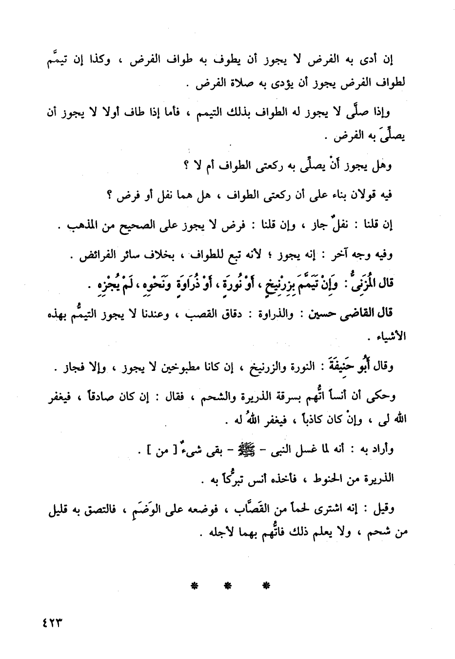 وقال أبو حنيفة: النورة والزرنيخ، إن كانا مطبوخين لا يجوز، وإلا فجاز. وحكى أن أنسًا أتهم بسرقة الذريرة والشحم، فقال: إن كان صادقًا، فيغفر الله لي، وإن كان كاذبًا، فيغفر الله له.