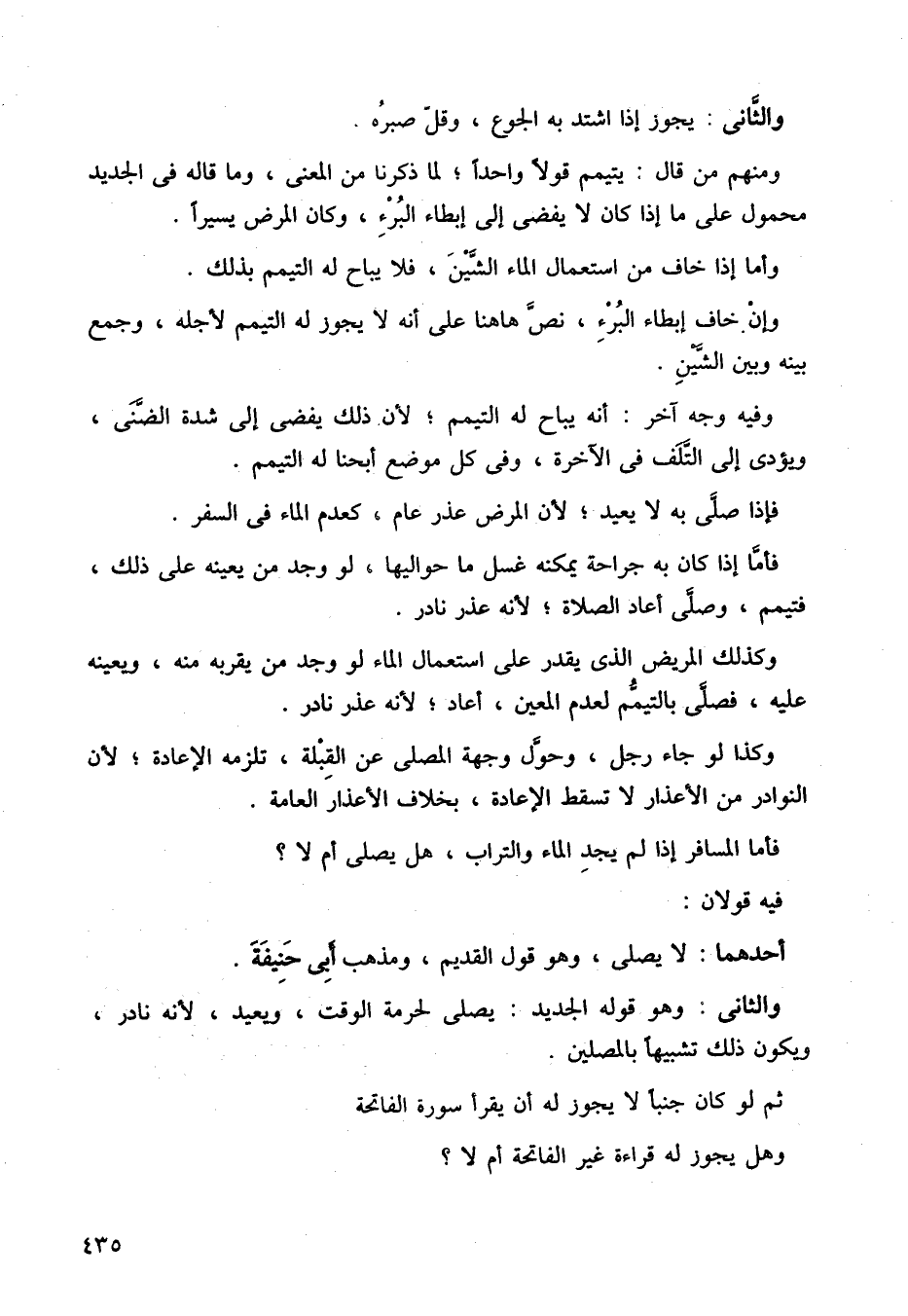 ومنهم من قال: يتيمم قولا واحدًا، لما ذكرنا من المعنى، وما قاله في الجديد محمول على ما إذا كان لا يفضي إلى إبطاء البرء، وكان المرض يسيرًا.