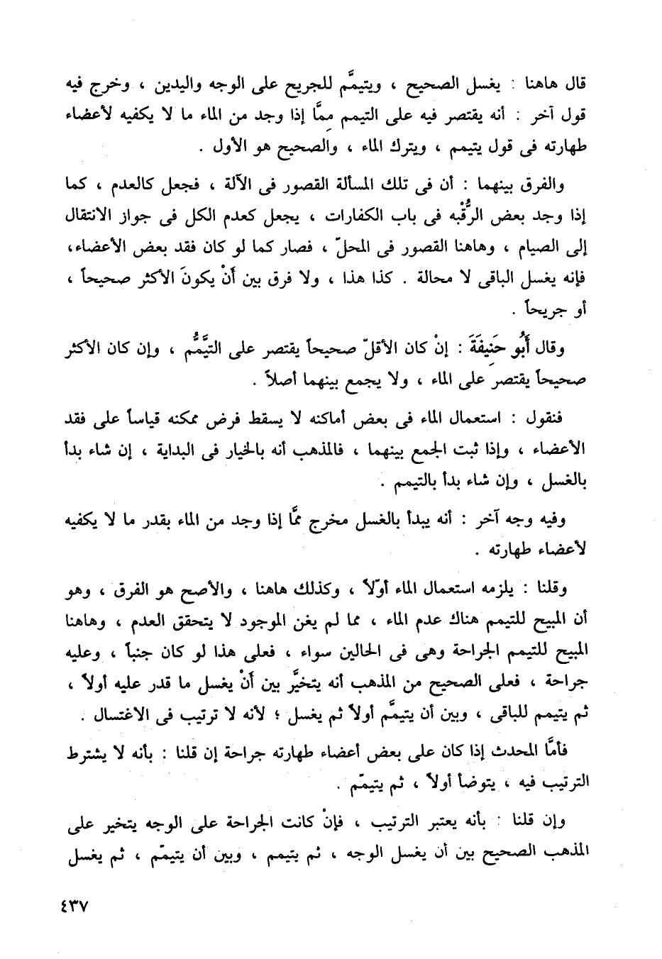 والفرق بينهما: أن في تلك المسألة القصور في الالة، فجعل كالعدم، كما إذا وجد بعض الرقبه في باب الكفارات، يجعل كعدم الكل في جواز الانتقال إلى الصيام، وها هنا القصور في المحل، فصار كما لو كان فقد بعض الأعضاء، فإنه يغسل الباقي لا محالة، كذا هذا، ولا فرق بين ان يكون الأكثر صحيحًا، أو جريحًا.