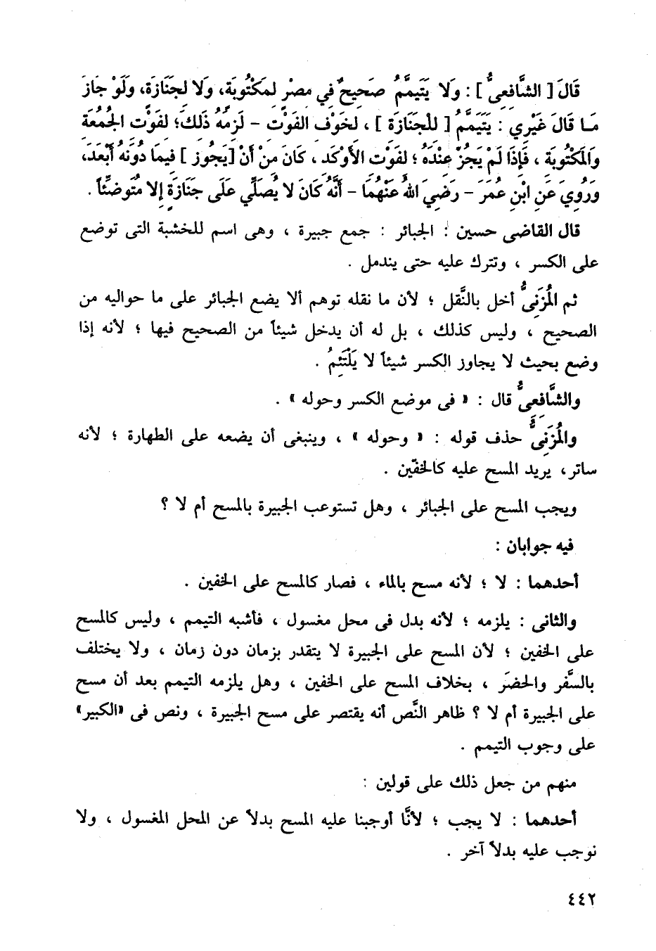 ثم المزني أخل بالنقل، لأن ما نقله توهم ألا يضع الجبائر على ما حواليه من الصحيح، وليس كذلك، بل له أن يدخل شيئًا من الصحيح فيها، لأنه إذا وضع بحيث لا يجاوز الكسر شيئًا لا يلتئم.