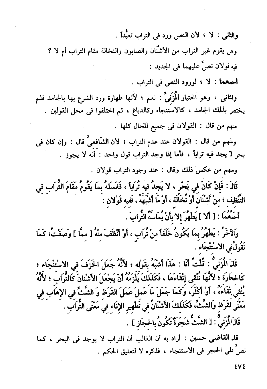 قال المزني: قلت أنا: هذا أشبه بقوله: لأنه جعل الخزف في الاستنجاء، كالحجارة لأها لا تقي إنقاءها، فكذلك يلزمه أن يجعل الأشنان كالتراب، لأنه ينقي نقاءه، أو أكثر وكما جعل ما عمل عمل القرظ والشث في الإهاب في معنى لقرظ والشث، فكذلك الأشنان في تطهير الإناء في معنى التراب.