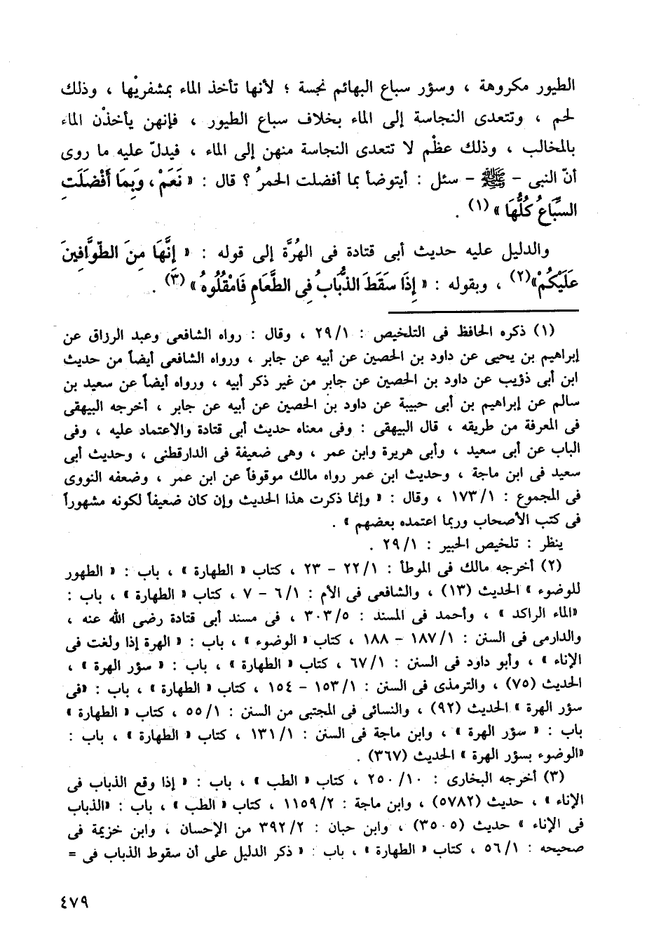 والدليل عليه حديث أبي قتادة في الهرة إلى قوله: إنها من الطوافين عليكم، وبقوله: إذا سقط الذباب في الطعام فامقلوه.