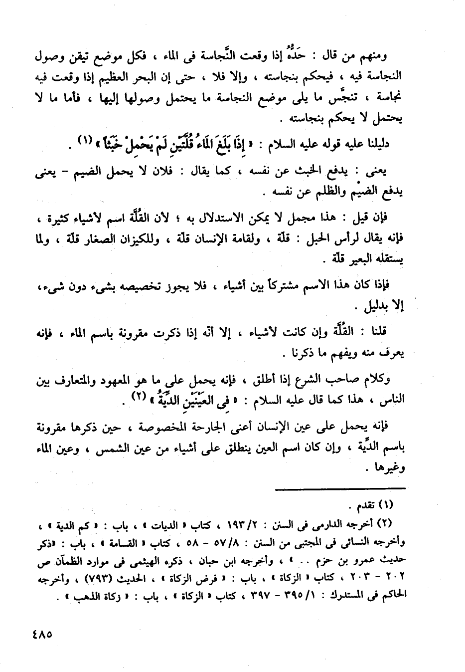 قلنا: القلة وإن كانت لأشياء، إلا أنه إذا ذكرت مقرونة باسم الماء، فإنه يعرف منه ويفهم ما ذكرنا.