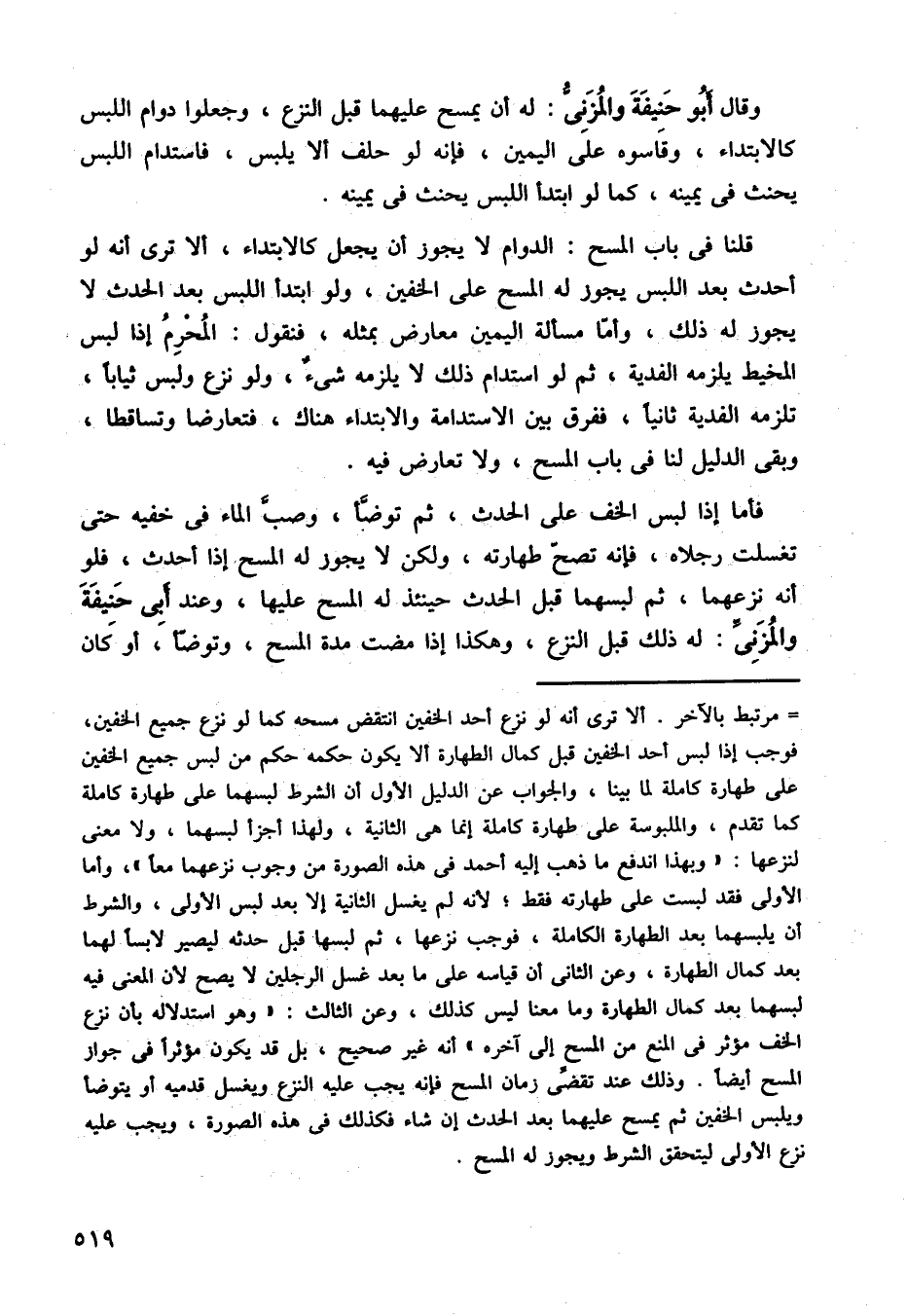 وقال أبو حنيفة والمزني: له أن يمسح عليهما قبل النزع، وجعلوا دوام اللبس كالابتداء، وقاسوه على اليمين، فإنه لو حلف ألا يلبس، فاستدام اللبس يحنث في يمينه، كما لو ابتدأ اللبس يحنث في يمينه.