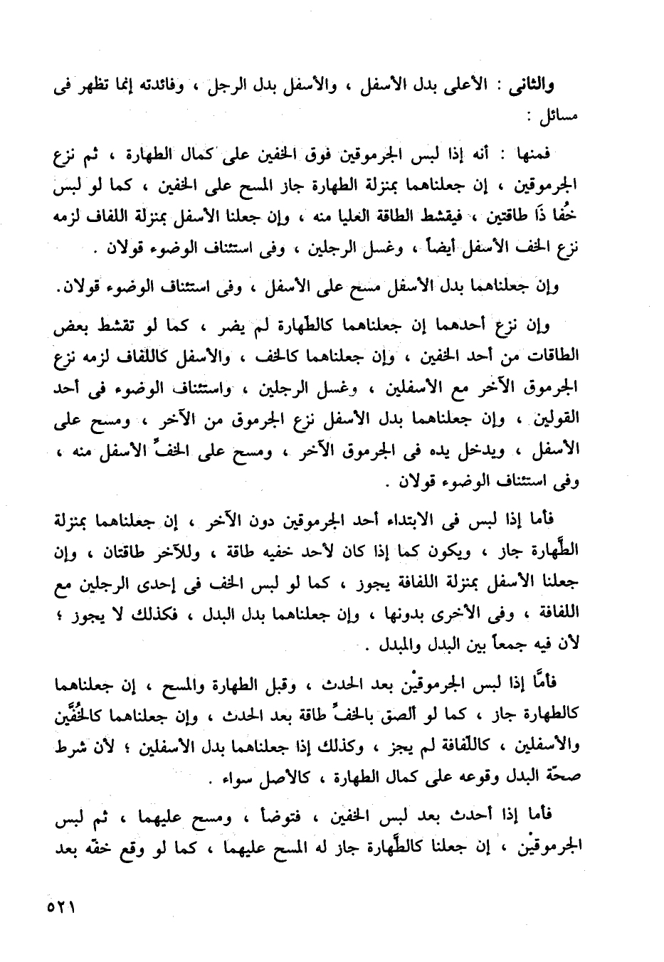 والثاني: الأعلى بدل الأسفل، والأسفل بدل الرجل، وفائدته إنما تظهر في مسائل:
