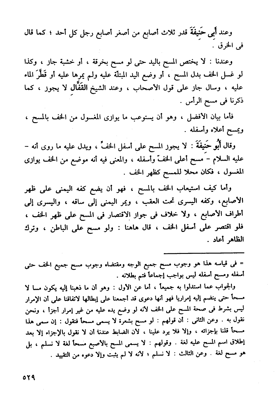 وعندنا: لا يختص المسح باليد حتى لو مسح بخرقة، أو خشبة جاز، وكذا لو غسل الخف بدل المسح، أو وضع اليد المبتلة عليه ولم يمرها عليه أو قطر الماء عليه، وسأل جاز على قول الأصحاب، وعند الشيخ القفال لا يجوز، كما ذكرنا في مسح الرأس.