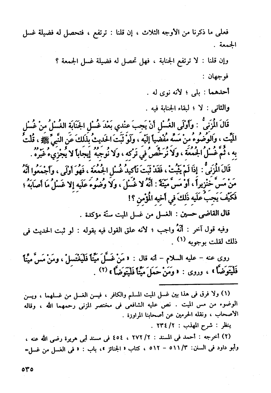 قال المزني: وأولى الغسل أن يجب عندي بعد غسل الجنابة الغسل من غسل الميت، والوضوء من مسه مفضيًا إليه، ولو ثبت الحديث بذلك عن النبي صلى الله عليه وسلم قلت به ثم غسل الجمعة، ولا نرخص في تركه، ولا نوجبه إيجابًا لا يجزيء غيره.