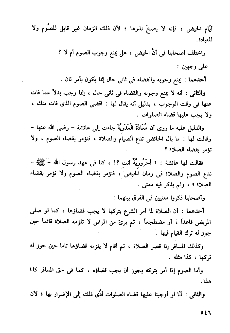 فقالت لها عائشة/ أحرورية أنت؟ كنا في عهد رسول الله صلى الله عليه وسلم ندع الصوم والصلاة في زمان الحيض، فنؤمر بقضاء الصوم ولا نؤمر بقضاء الصلاة.